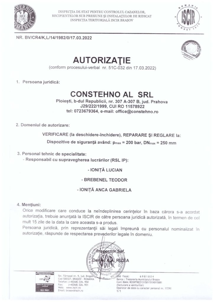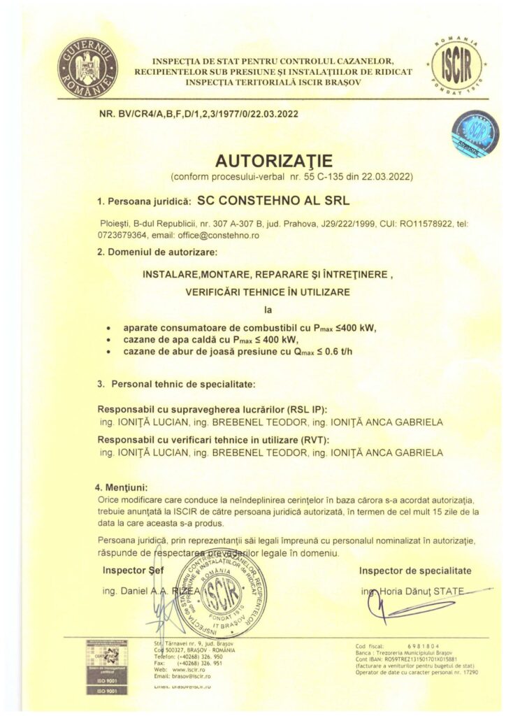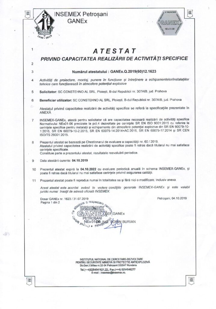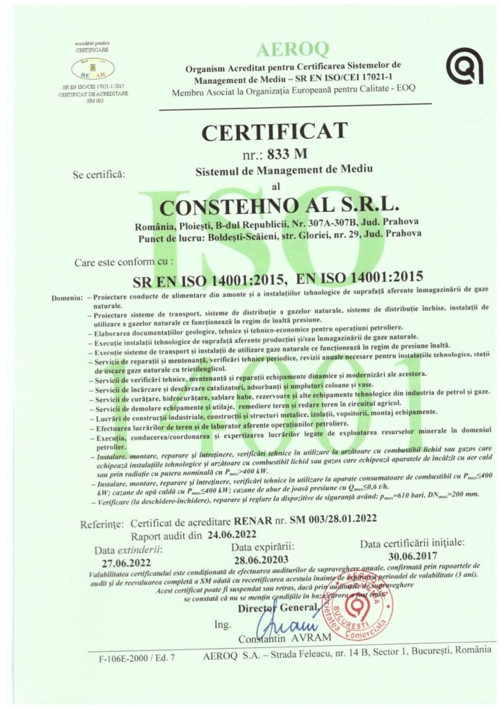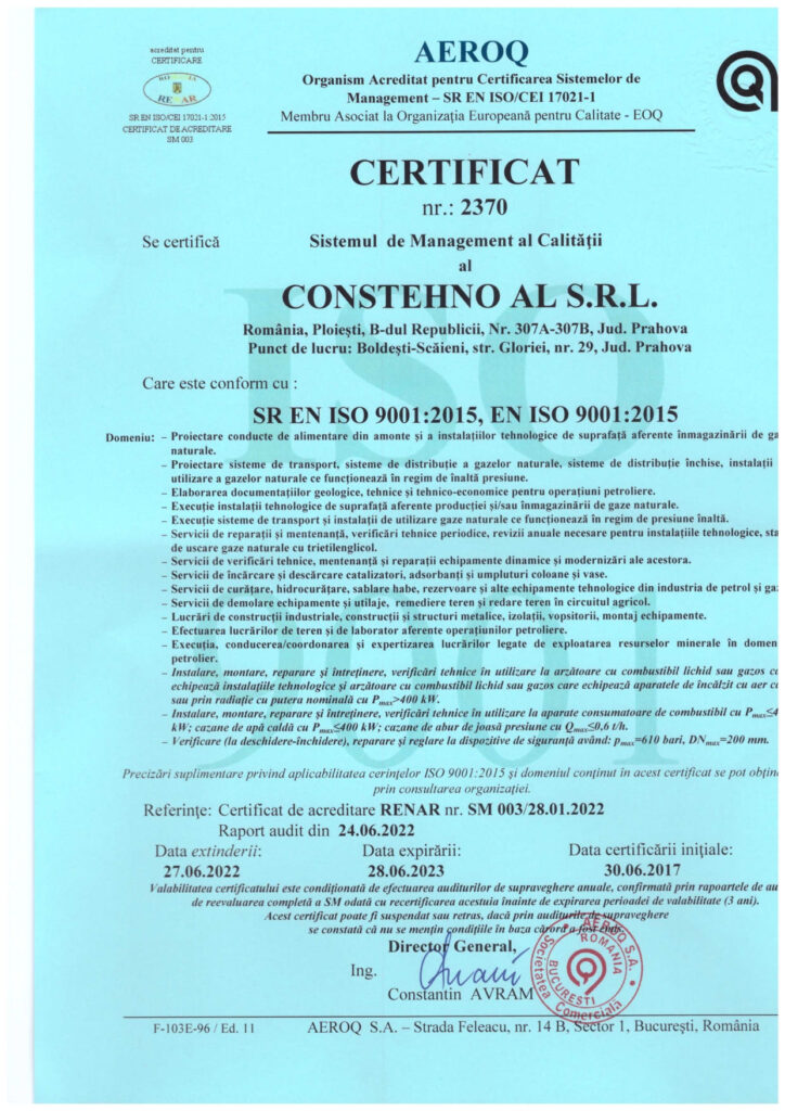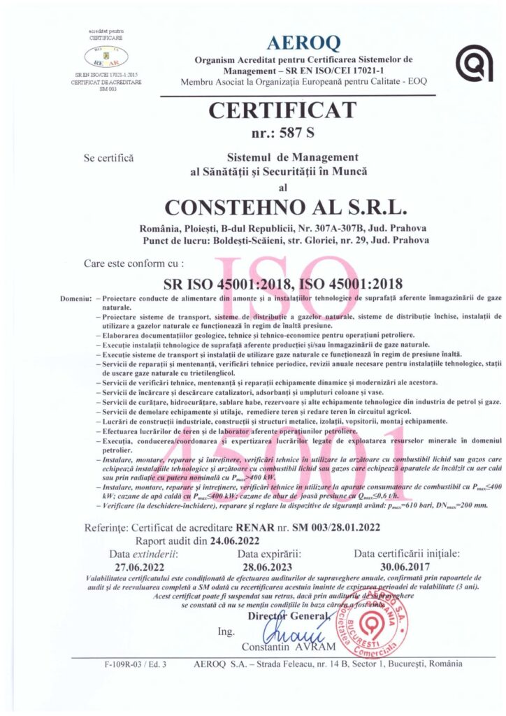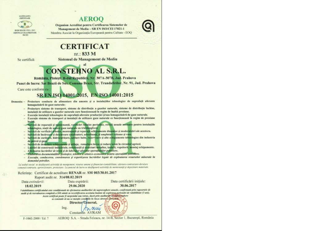 - In order to achieve these principles, we implemented, will maintain and continuously improve the integrated management system in accordance with applicable reference documents: SR EN ISO 9001:2015, SR EN ISO 14001:2015 and SR OHSAS 18001:2008, certifications awarded by TUV and AEROQ.